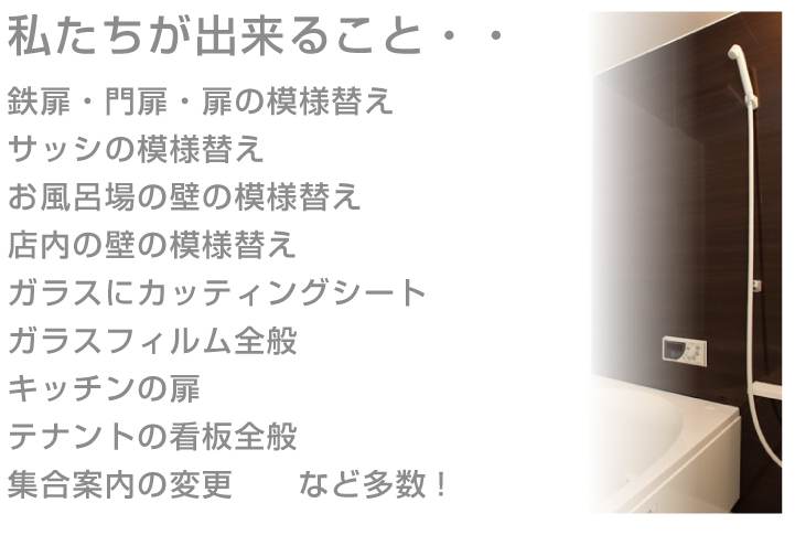 愛知県・名古屋市を中心になりますが、愛知県・名古屋市を中心になりますが、毎回違う管理会社様・建築会社様ではなく業者間のしばりもございませんので、お客様と顔を合わせ入念に打ち合わせをする事でほとんどののミスを防げます。ご希望に沿った提案や施工などアドバイスもできます。また第三者が施工することはなく自社にて施工致しますので無駄な意思の疎通のロスをカットすることができ大変満足されております。 |